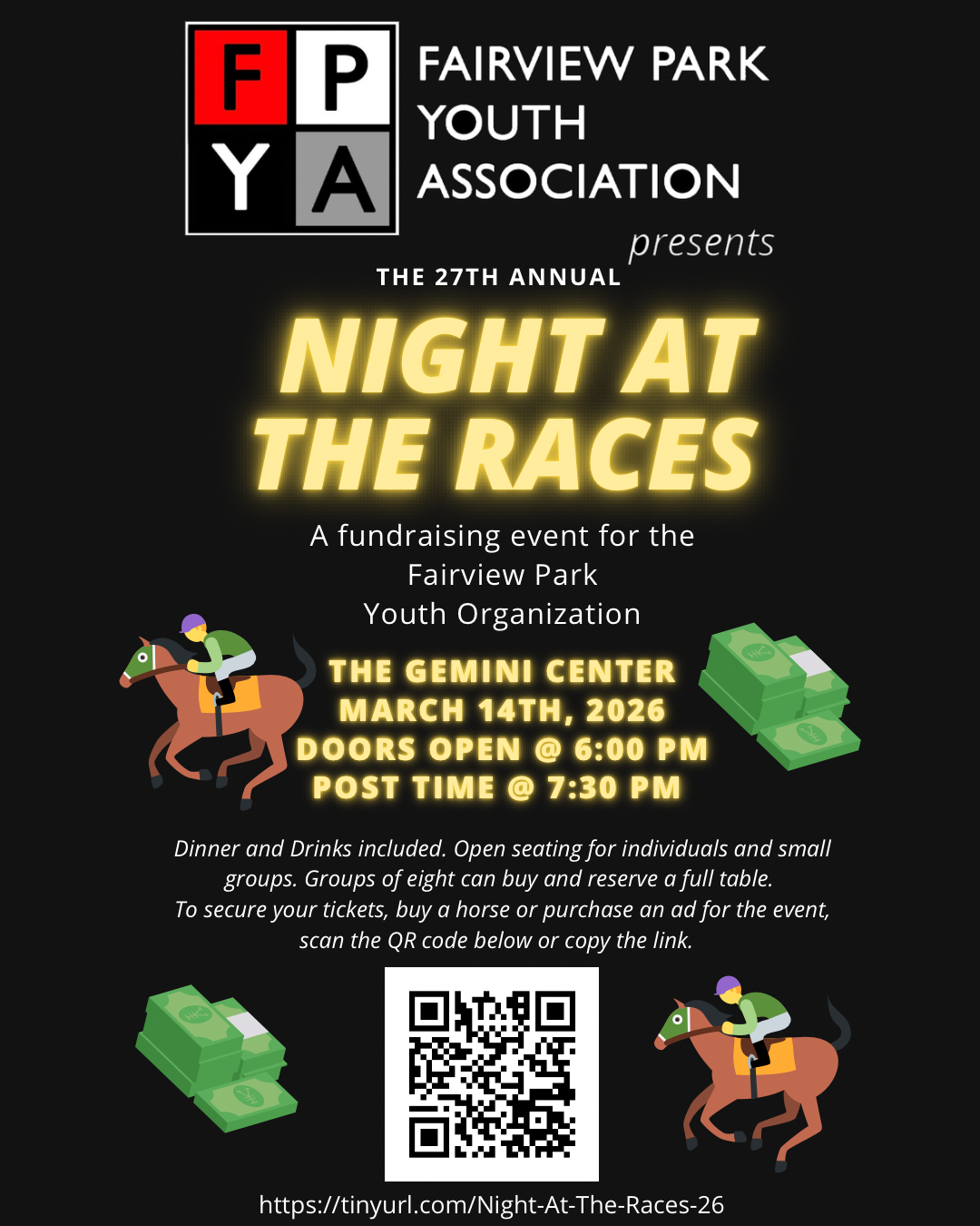 The Fairview Park Youth Association’s first fundraising event of the year is our 27th annual The Greatest Night at the Races.